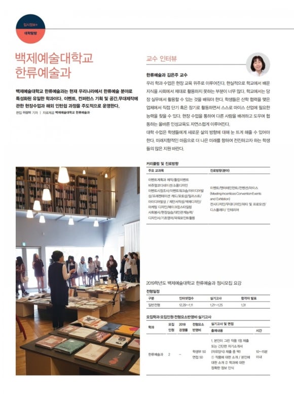 아트앤디자인 한류예술과 기사 수록 페이지 정보 조회 17,342회 등록일 18-11-30 본문 수정 삭제 목록 이전글2019학년도 한류예술과 정시 모집 안내 18.12.21 다음글2019학년도 한류예술과 정시모집 18.11.30