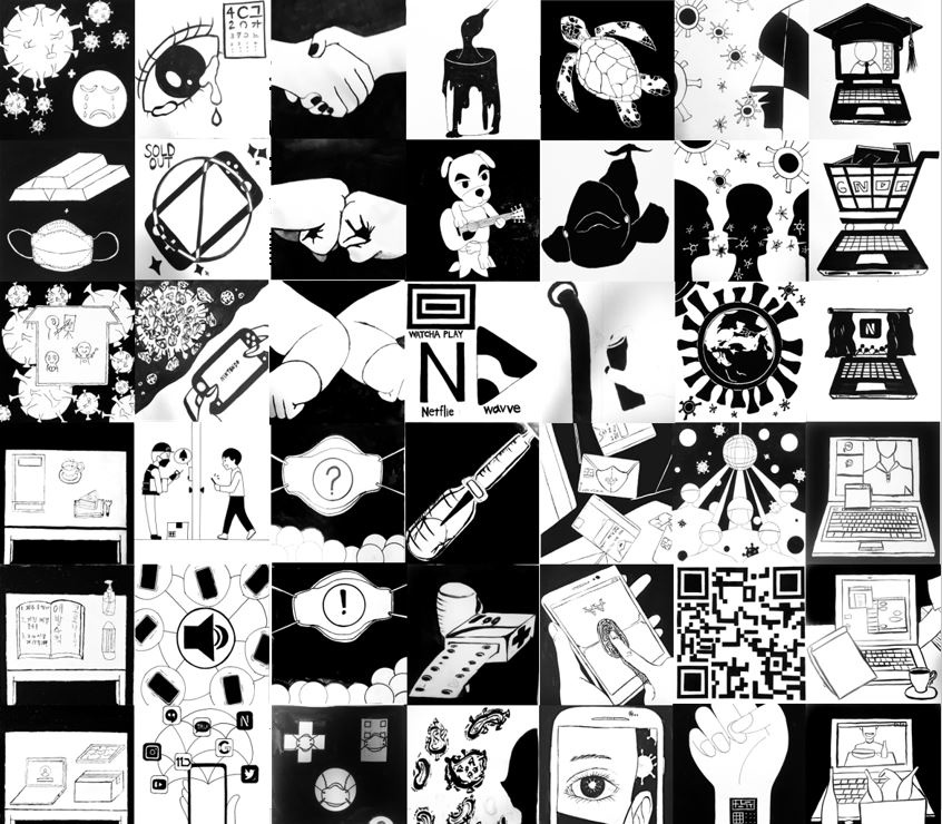 코로나 사태가 심각해지면서 코로나를 주제로 이미지를 단순화하는 작업을 하였습니다.
